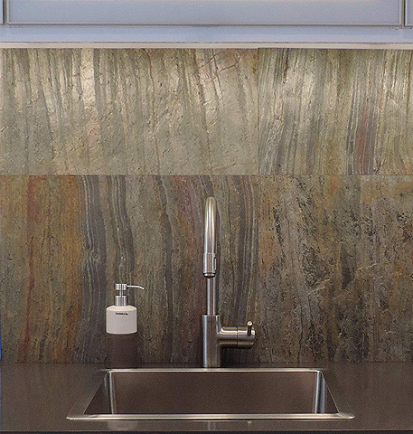 Design Green with Thin Slate Veneer. Transportation cost, fuel and space are saved in normal shipping and handling compared to standard stone or tile products because of Thin Slate Veneer’s extreme lightweight. Additional savings in packaging materials are an added benefit when compared with stone or tile products. Thin Slate Veneer is also a Sustainable Product by utilizing only what is needed from the stone quarry. Because of the unique manufacturing process, each sheet of Thin Slate Veneer represents just a thin layer of the natural stone.