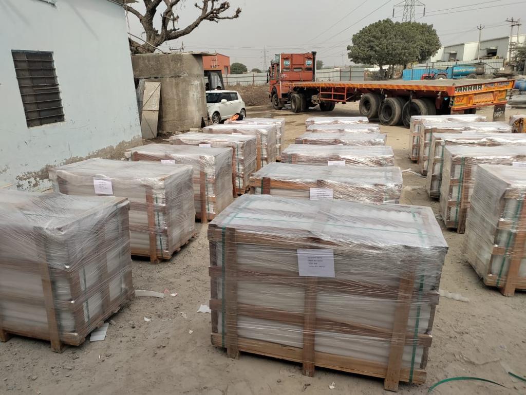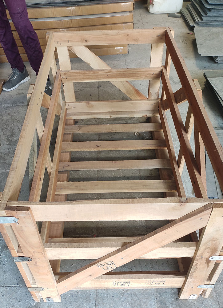 After the crate is filled, the next thing is to secure the packed products by putting a foam sheet and polythene sheet on top of the crate. This helps in avoiding any kind of accidental damage during transit. Also, the crates are chemically treated and fumigated before dispatch.