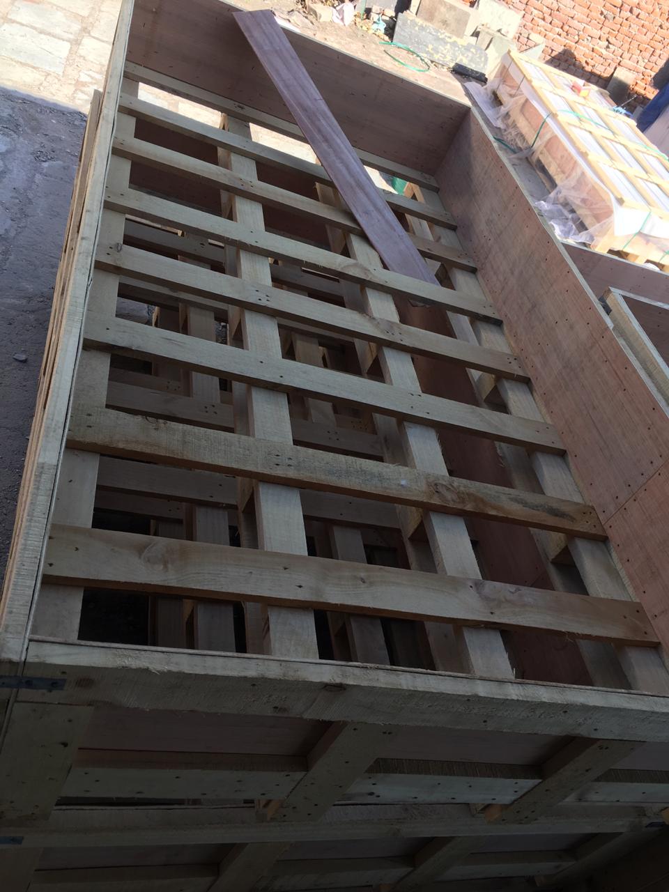 Eventually, the crate is sealed by fixing the upper part using nails. Another layer of polythene sheet is used from the outside to prevent exposure to the sun, water, and cold. Packaging straps are used to secure the crate from all sides.
