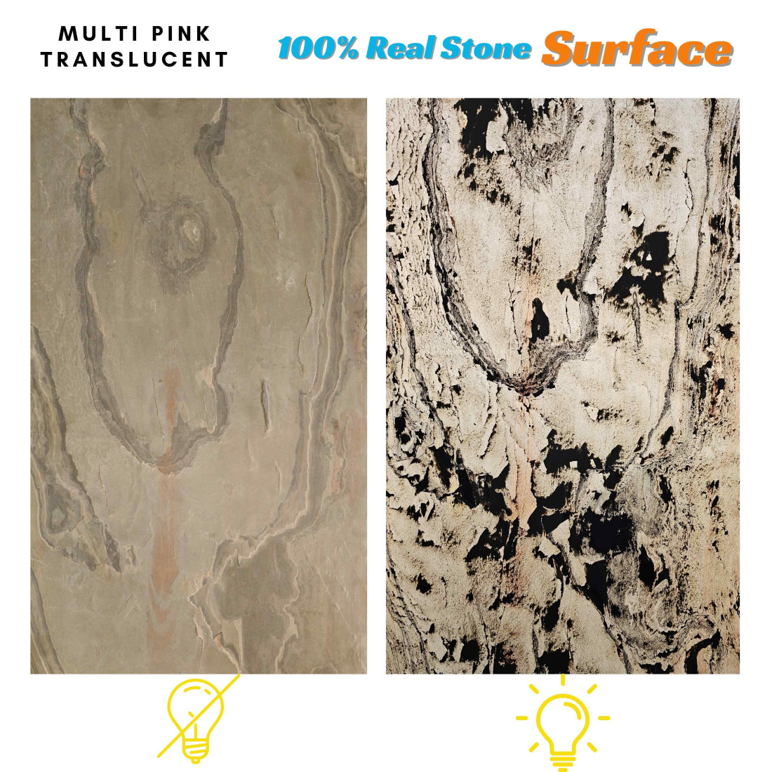 Imagine a space adorned with the gentle glow of Multi Pink Slate, its surfaces radiating with a soft, diffused light that creates an ambiance of serenity and sophistication. That's the magic of our flexible translucent veneers – they elevate your interiors to new heights of luminous beauty.